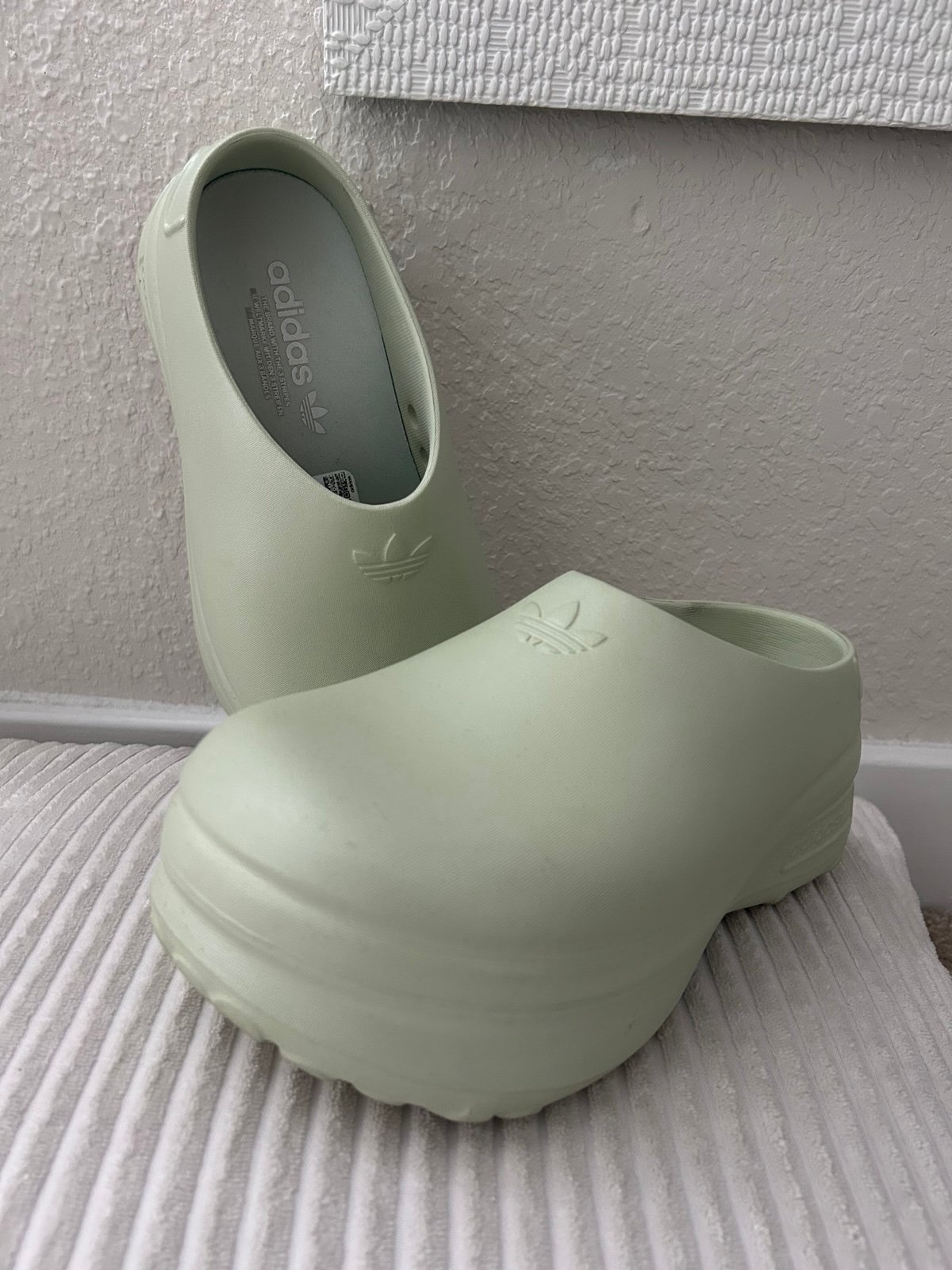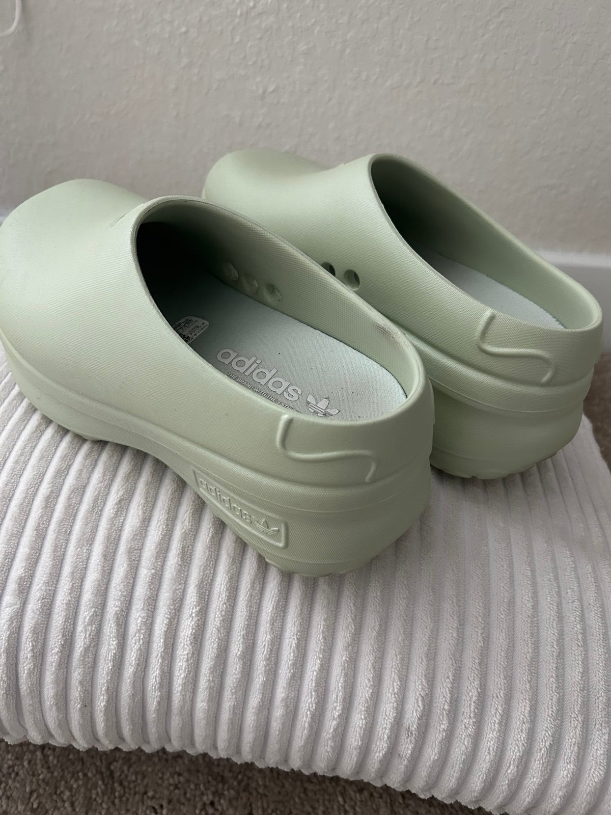 Slip them on and go off. These adidas mules honor the iconic Stan Smith shoes in a way you never knew you needed. The clean upper and heel cap detail are inspired by the original, but the chunky proportions and ultra-smooth feel revolutionize with a modern twist. They're built with a foam material that's made in part from sugarcane for eco-minded design you'll be proud to rock. No straps or laces means they slip on and off — but stay comfortably on your feet the entire wear.