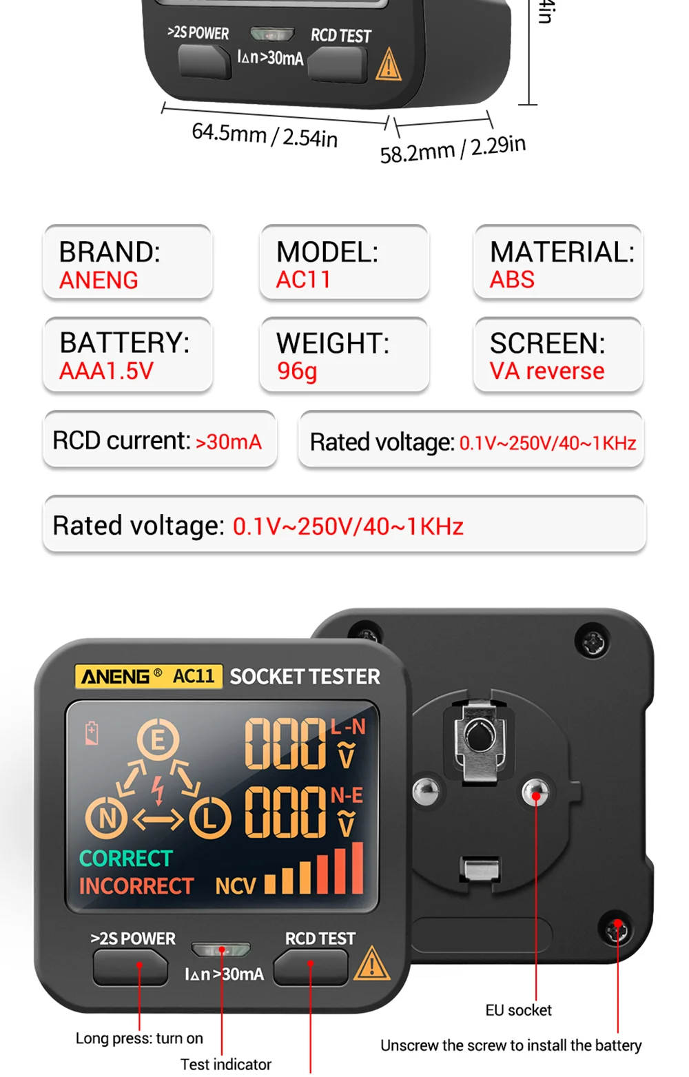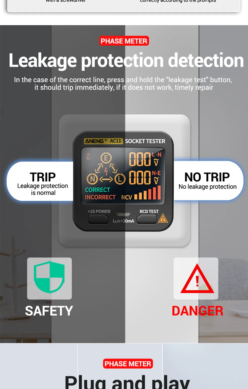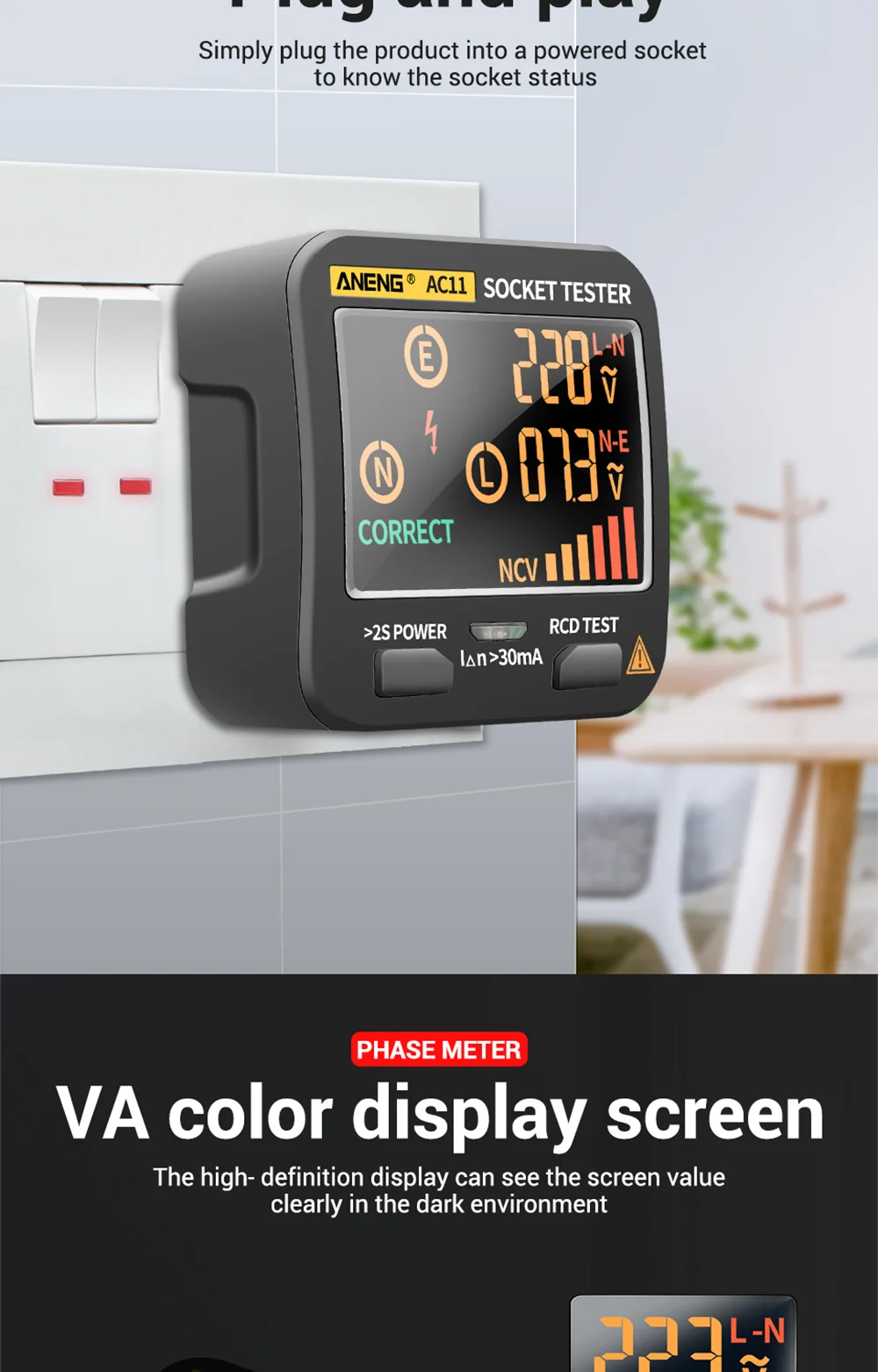 It can intelligently detect the presence of dangerous voltages. It can test the socket voltage and display it on the LCD display.