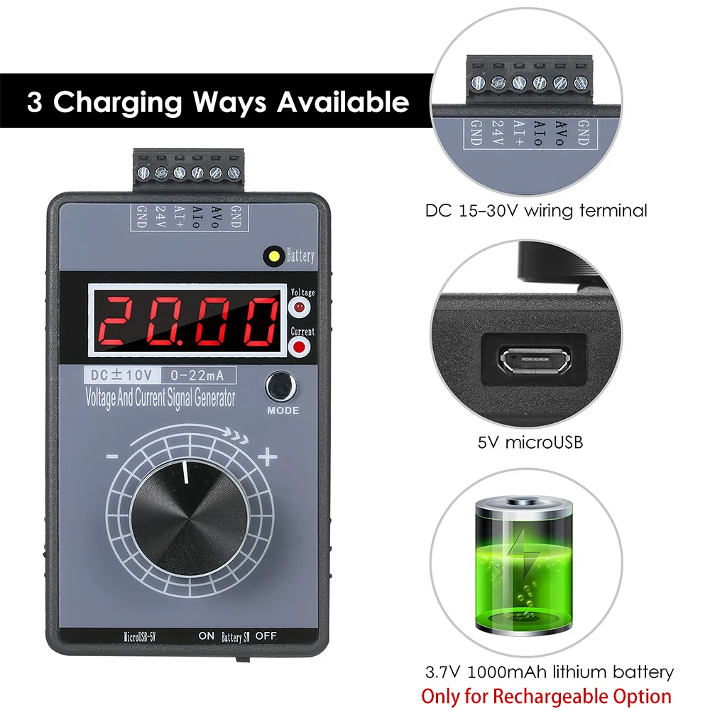 3. Current output is adjustable between 0mA and 22mA, error <0.05mA after calibration, sampling resistance <500Ω.