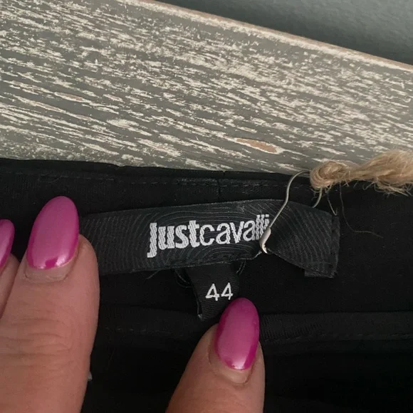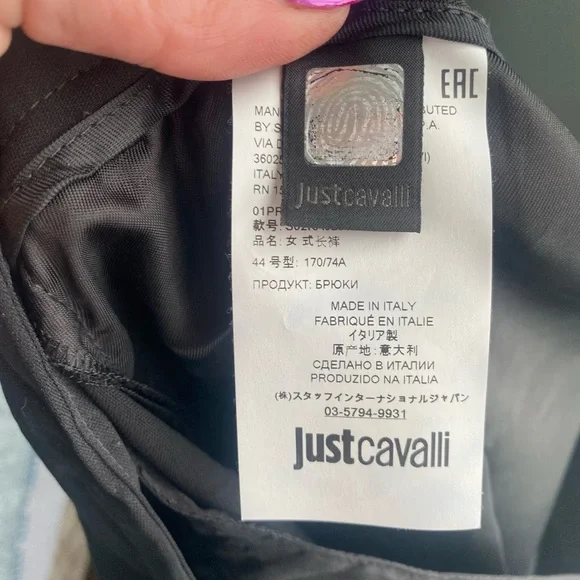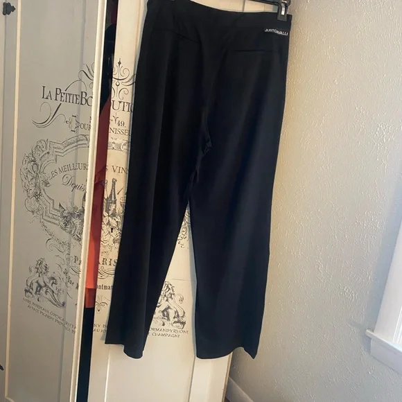 These are NWOT Beautiful Just Cavalli High Rise Wide Leg Crepe Trousers with a side split. They have never been worn and have no defects. They are Viscose/Elastane and perfect for the summer! The "just cavalli" name is on the back of pants aa shown. They have 2 front pockets and 2 back faux pockets. They split is not too excessive that you could not wear these too work! Please see attached last picture! feel free to ask any questions! Will ship within 24 hrs of sale. These retail for $355 in stores/online. Price is significantly discounted and is firm please! They are a size 44 which is equivalent to a US 8 in this brand.