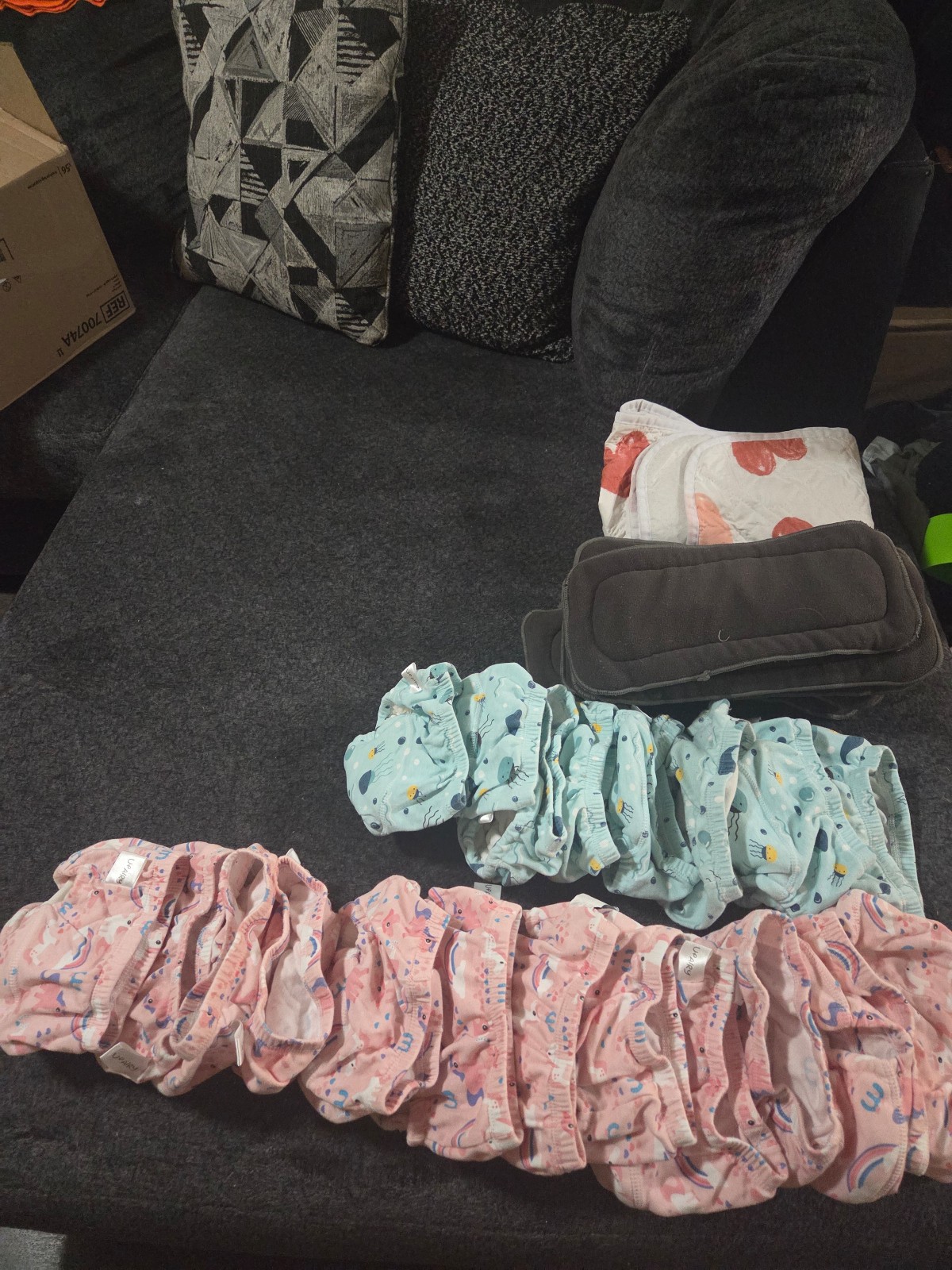 I have 8 blue whale and 12 pink unicorn that my daughter XL Upairy pants that couldn't not fit. Brand new. Never used. The manufacturers suggested to wash three times before use. After washing they wouldn't fit at all. They are up air xl. I a water proof mattress and 10 absorbent pads are included.